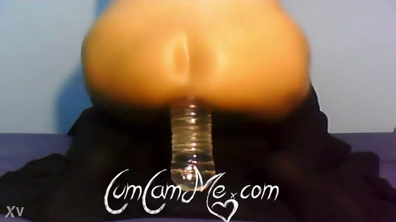 Petite skinny babe taking a thick dildo deep in her tight anal hole.