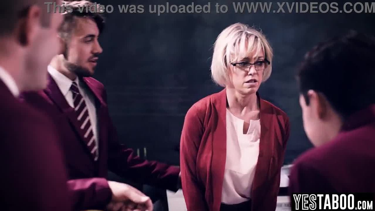 teacher slyly drills silly students with his hard cock in sneaky classroom action.
