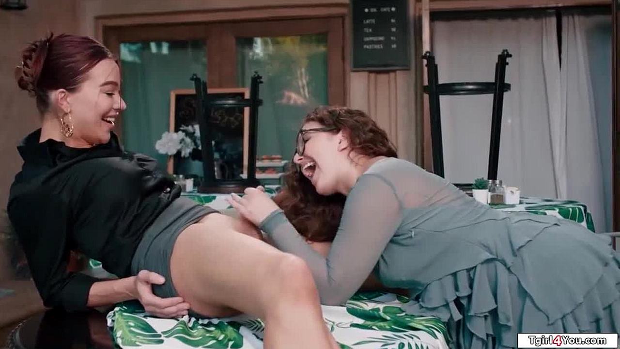 Fucking my petite tgirl college girlfriend in her public cafe spot